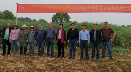 4月23日,荆州农业科学院在荆州区马山镇安碑村组织召开了2019年荆州市高效冬春饲料油菜种植与青贮技术现场观摩活动。由华中农业大学周广生教授、廖庆喜教授和荆州市农业农村局、荆州市畜牧技术推广站、荆州市农技推广中心组成的专家团队现场对灌施牛粪沼液饲料油菜的试验进行了田间测产,折合亩产可达7.5吨。周广生组长表示,该项目达到了充分利用有机肥,减施化肥的成效,实现了饲料油菜种植的绿色高产高效,缓解了牛羊养殖冬春饲料紧张的问题。