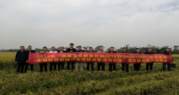 11月1日,荆州农业科学院举办国家重点研发计划“江汉平原再生稻轻简机械化栽培技术集成与示范”项目田间现场测产验收观摩会。测产验收观摩会以松滋市纸厂河镇王家大湖水稻种植专业合作社示范基地为主会场,以监利尚禾农业和双翔水稻种植专业合作社、石首市长生水稻专业合作社、洪湖沙口镇董口村四个示范基地为分会场,同时举行现场测产验收观摩活动。