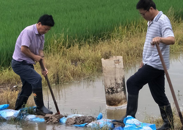 水稻服务分队一直奋战在科技抗灾第一线。6月17日,分队专家就到监利市开展科技活动,调查暴雨对农业生产的影响,指导国家重点研发计划“江汉平原再生稻轻简机械化栽培技术集成与示范”等项目实施工作。分队还到该院对口帮扶的监利市红城乡金潭村家贤稻虾合作社,针对暴雨导致田间水稻淹水时间过长、出苗很不平衡等现象,提出相关田间管理建议和救灾方案。之后,分队走进江陵县、松滋市、石首市等地,对各地开展的虾稻、再生稻、鸭蛙稻等绿色生产模式进行科技抗灾指导。