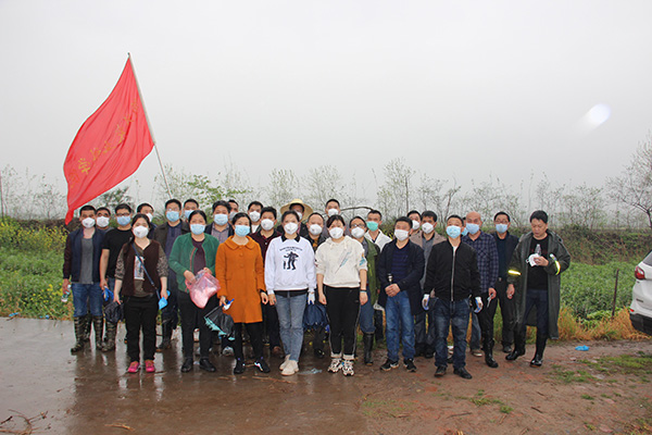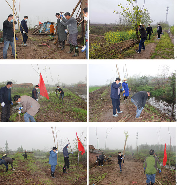 植树现场,天下着濛濛细雨,院长陈洪洲同志带领参加人员冒雨投入到紧张的植树劳动之中。按照疫情防控要求,大家纷纷戴好口罩,几人一组,切实做到不扎堆、不聚集,拿起铁钎、铁锤、铁铲等工具热火朝天的干起来。有的挥钎打洞,有的搬运树苗,有的插苗扶正,有的夯土压实,大家分工合作,衔接有序,配合默契,干劲十足,看着1000棵树苗一排排整齐的林立起来,每位同志脸上都洋溢着自豪的笑容。在疫情防控期间开展植树活动,共同种下春天的“希望”,为打赢疫情防控阻击战贡献绿色力量。